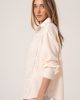 Camisa oversize de manga larga confeccionada en mezcla de lino y algodón. Presenta diseño bicolor con panel frontal bordado, cartera de botones y cuello clásico.
