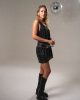Vestido de lentejuelas pequeñas, con bretel ancho.
